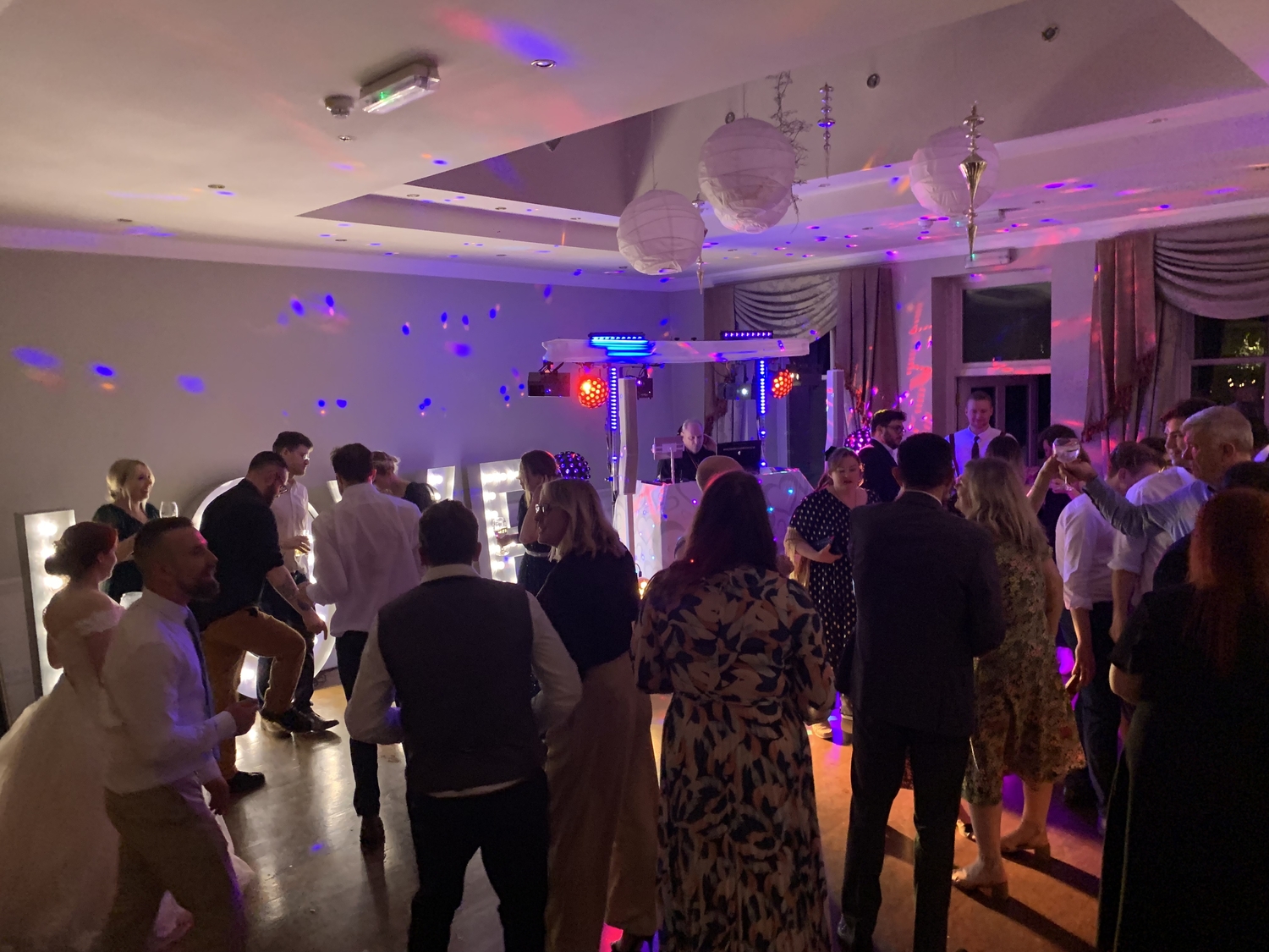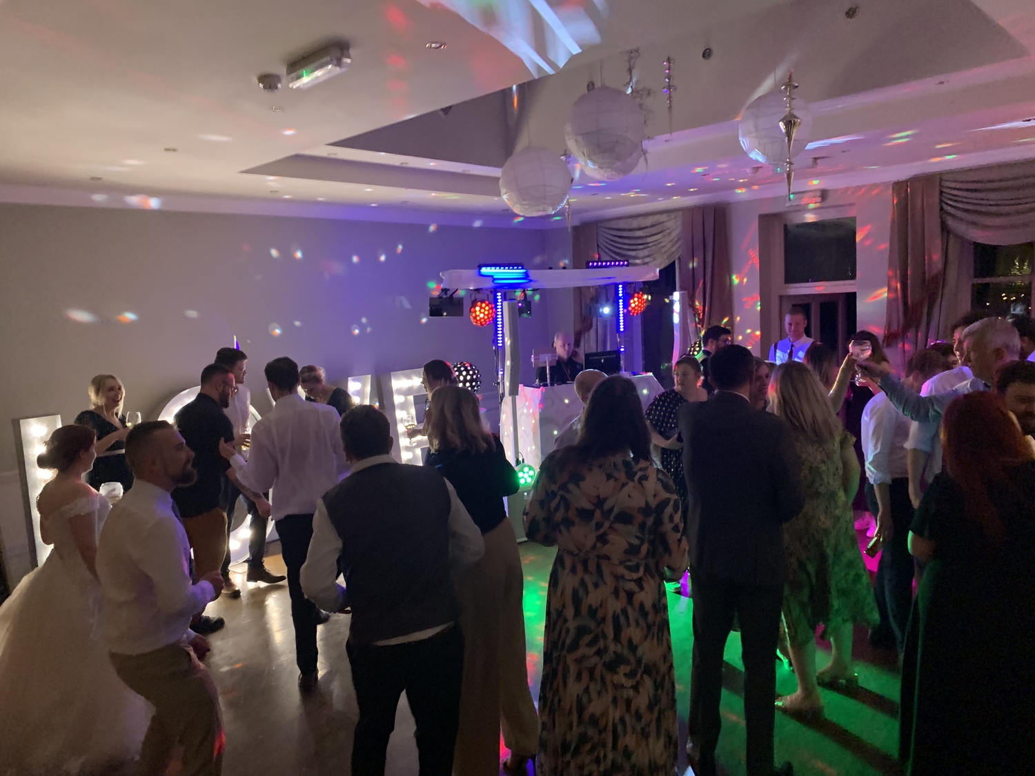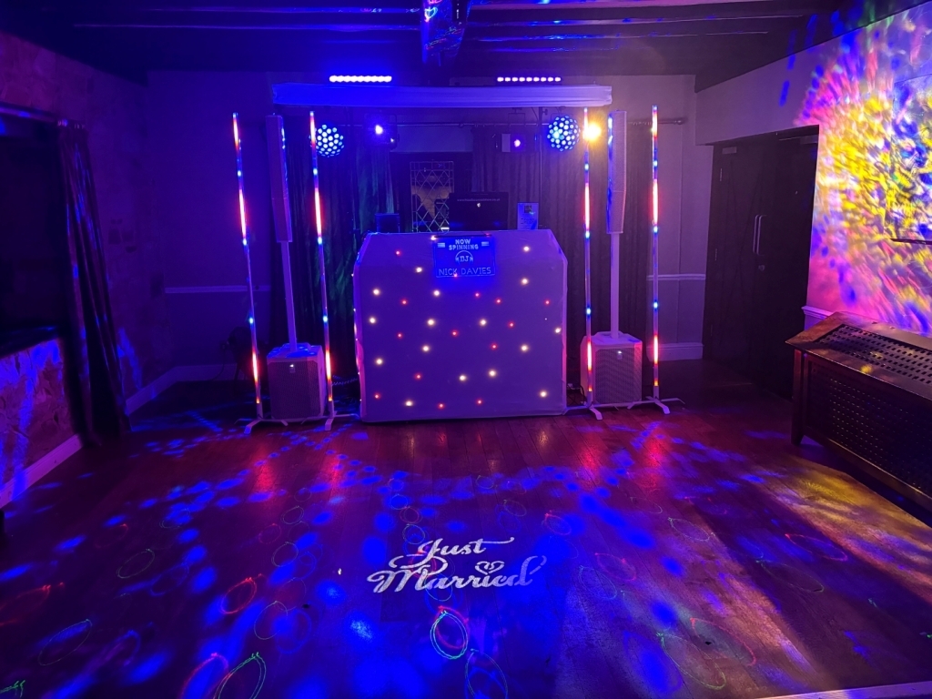 Ideal for a traditional white wedding. Lighting colours can be matched to your colour scheme if required.