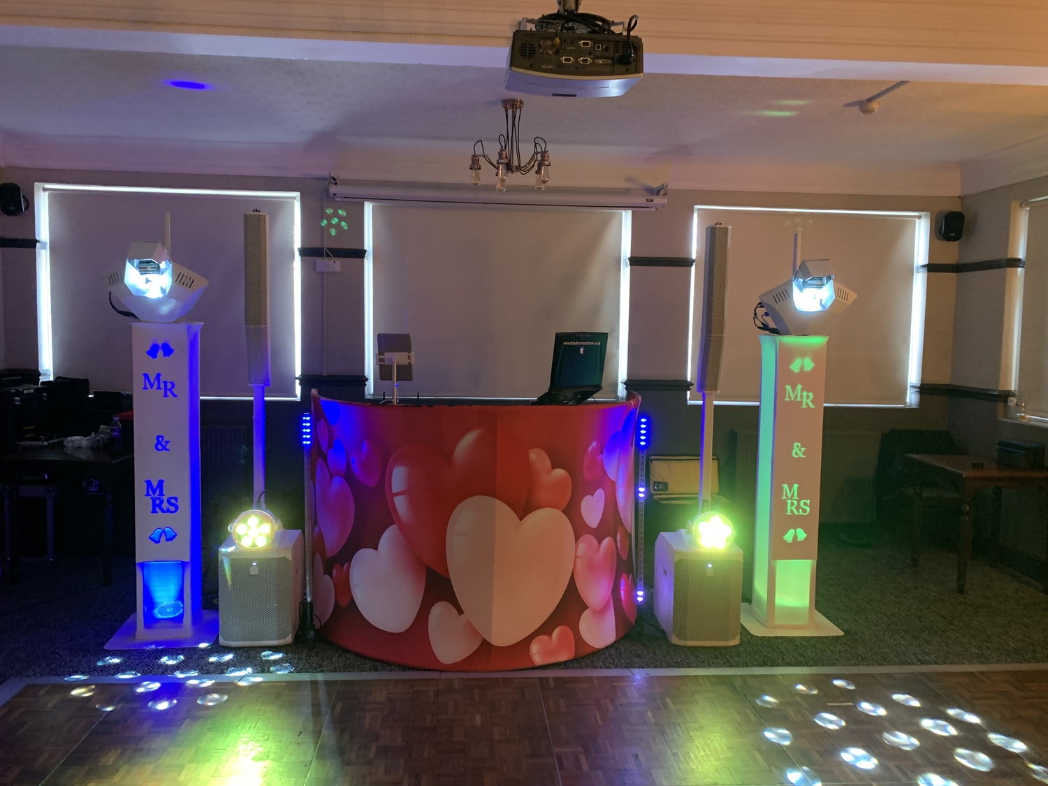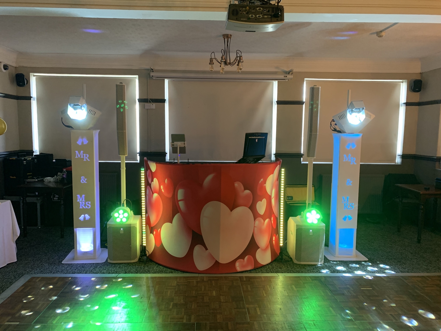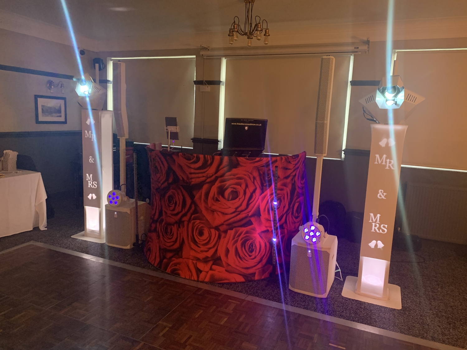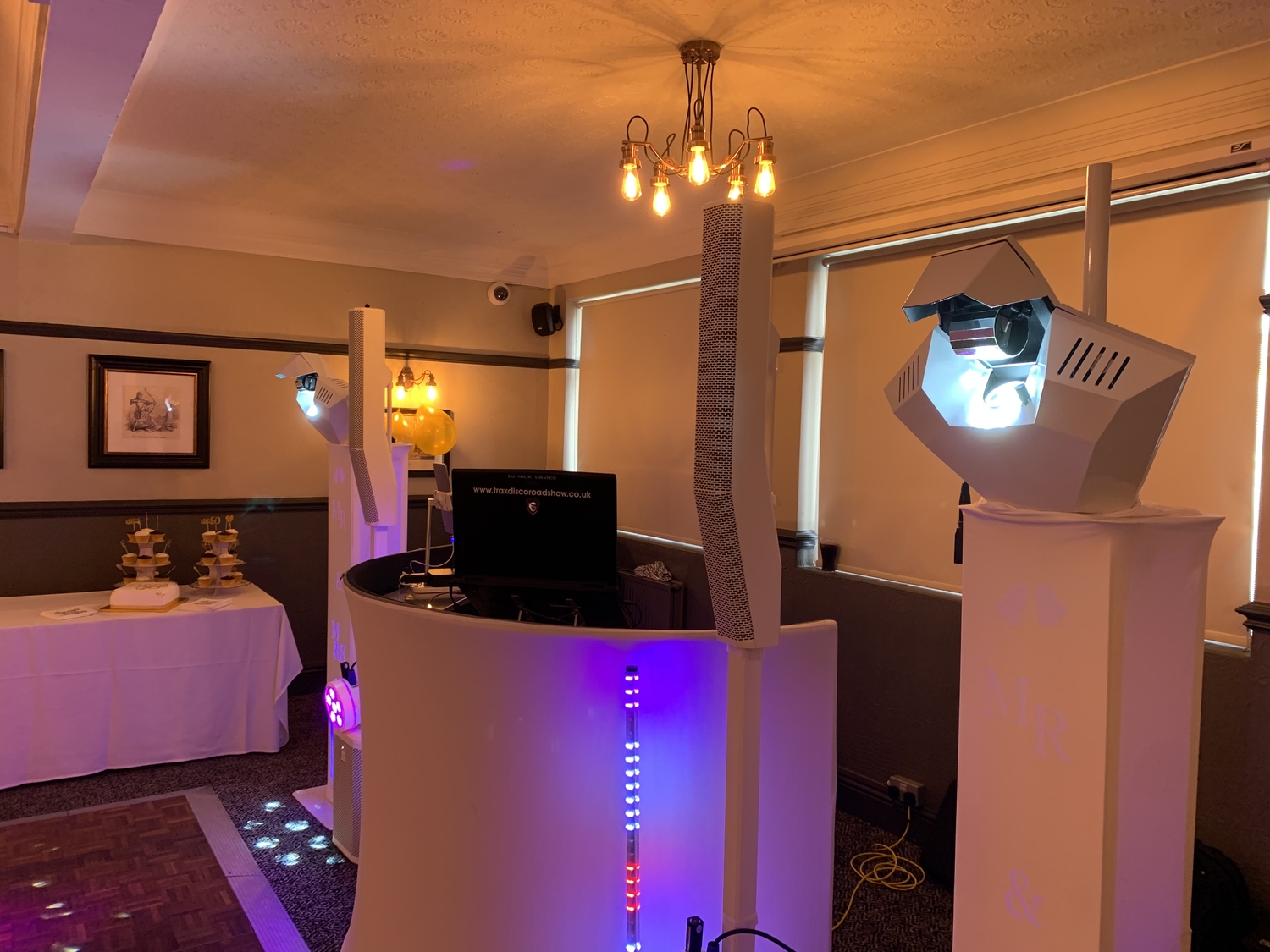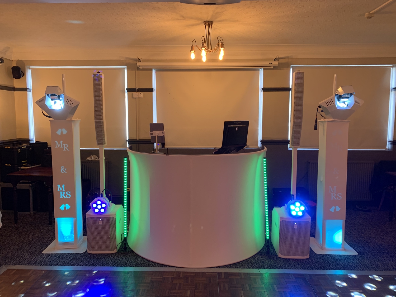 Introducing my latest wedding package - the All-White Wedding Package. This package offers a selection of DJ Booth patterns to choose from. It also has two advanced Martin Rush Wizard light effects customized with a unique white finish. You can opt for bright patterns in white or colour. The package includes two powerful LED PAR lights mounted on white speakers and two mesmerizing Rezo tube lights. This package is perfect for your wedding decor with its traditional and elegant vibe.